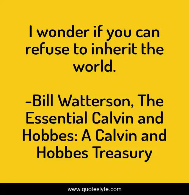This page presents the quote "I wonder if you can refuse to inherit the world.". Author of this quote is Bill Watterson, The Essential Calvin and Hobbes: A Calvin and Hobbes Treasury. .