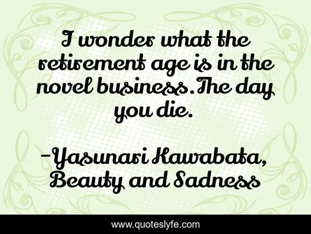 "Yasunari Kawabata, Beauty and Sadness Quotes." Quoteslyfe.com, 2025. Mon. 08 Dec. 2025. <https://www.quoteslyfe.com/quote/I-wonder-what-the-retirement-age-is-27910>.