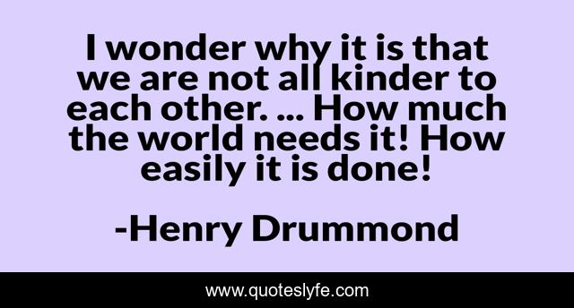 This page presents the quote "I wonder why it is that we are not all kinder to each other. ... How much the world needs it! How easily it is done!". Author of this quote is Henry Drummond. This quote is about helping, people,.
