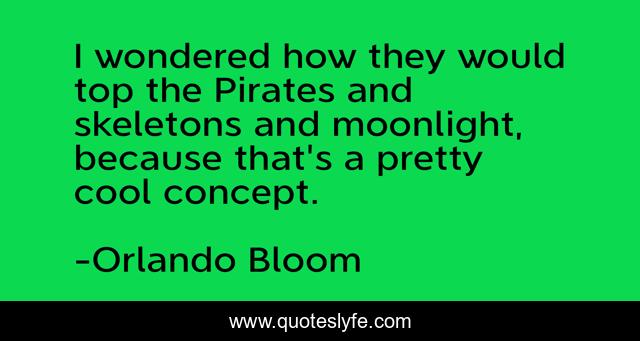 This page presents the quote "I wondered how they would top the Pirates and skeletons and moonlight, because that's a pretty cool concept.". Author of this quote is Orlando Bloom. This quote is about moonlight, skeletons, pretty,.