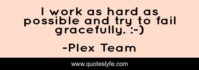This page presents the quote "I work as hard as possible and try to fail gracefully. :-)". Author of this quote is Plex Team. This quote is about positive, confidence, motivational, optimistic, hard-work,.