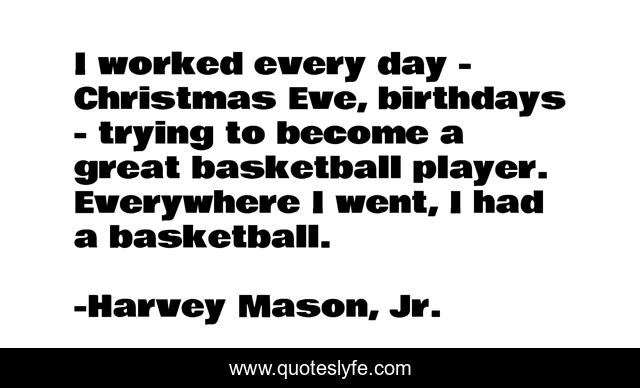 This page presents the quote "I worked every day - Christmas Eve, birthdays - trying to become a great basketball player. Everywhere I went, I had a basketball.". Author of this quote is Harvey Mason, Jr.. This quote is about great, basketball, day,.