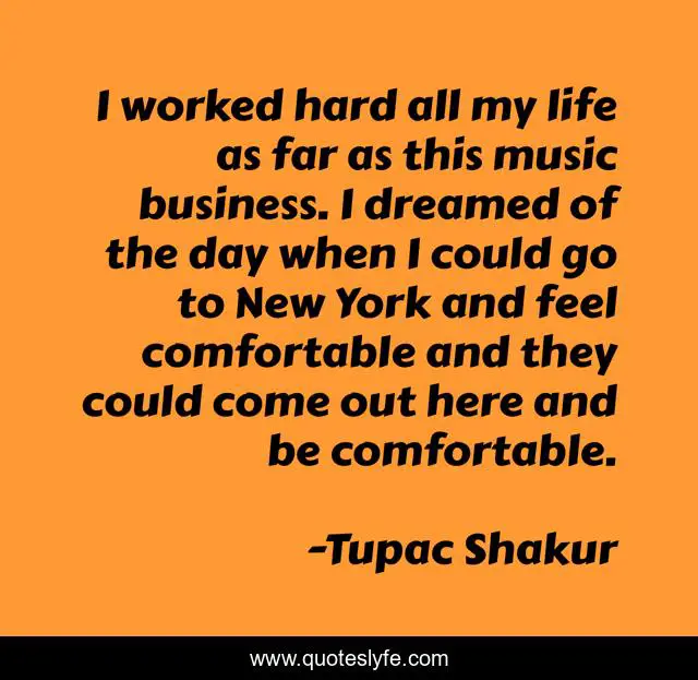 This page presents the quote "I worked hard all my life as far as this music business. I dreamed of the day when I could go to New York and feel comfortable and they could come out here and be comfortable.". Author of this quote is Tupac Shakur. This quote is about life, music, day,.
