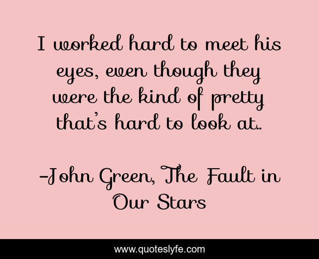 This page presents the quote "I worked hard to meet his eyes, even though they were the kind of pretty that’s hard to look at..". Author of this quote is John Green, The Fault in Our Stars. .