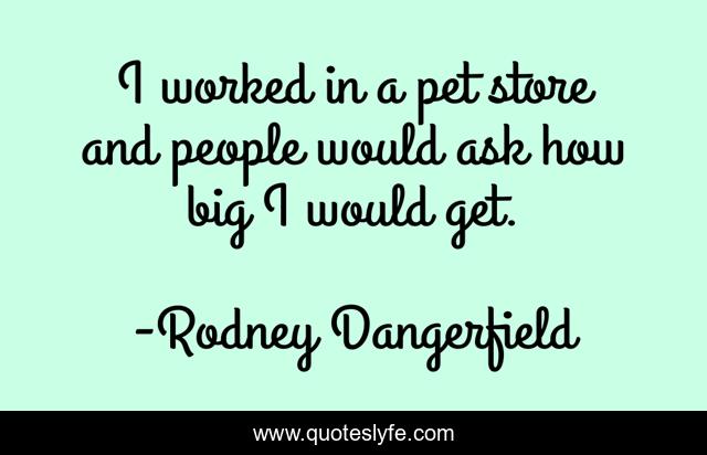 This page presents the quote "I worked in a pet store and people would ask how big I would get.". Author of this quote is Rodney Dangerfield. This quote is about ask, big, people,.