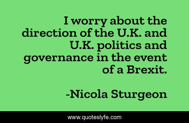 This page presents the quote "I worry about the direction of the U.K. and U.K. politics and governance in the event of a Brexit.". Author of this quote is Nicola Sturgeon. This quote is about direction, event, worry,.
