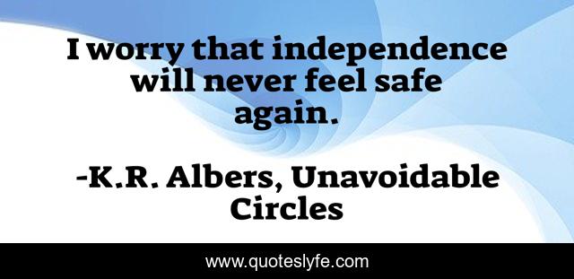 This page presents the quote "I worry that independence will never feel safe again.". Author of this quote is K.R. Albers, Unavoidable Circles. .