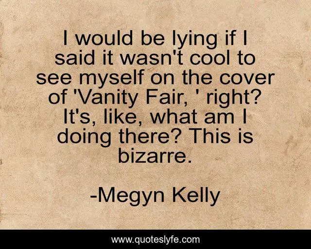 This page presents the quote "I would be lying if I said it wasn't cool to see myself on the cover of 'Vanity Fair, ' right? It's, like, what am I doing there? This is bizarre.". Author of this quote is Megyn Kelly. This quote is about myself, see,.