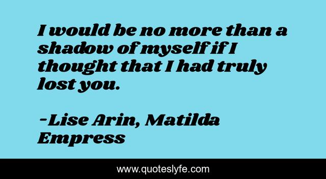 This page presents the quote "I would be no more than a shadow of myself if I thought that I had truly lost you.". Author of this quote is Lise Arin, Matilda Empress. This quote is about historical-fiction, historical-romance, historical-romance-fiction,.