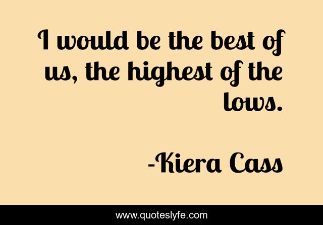This page presents the quote "I would be the best of us, the highest of the lows.". Author of this quote is Kiera Cass. .