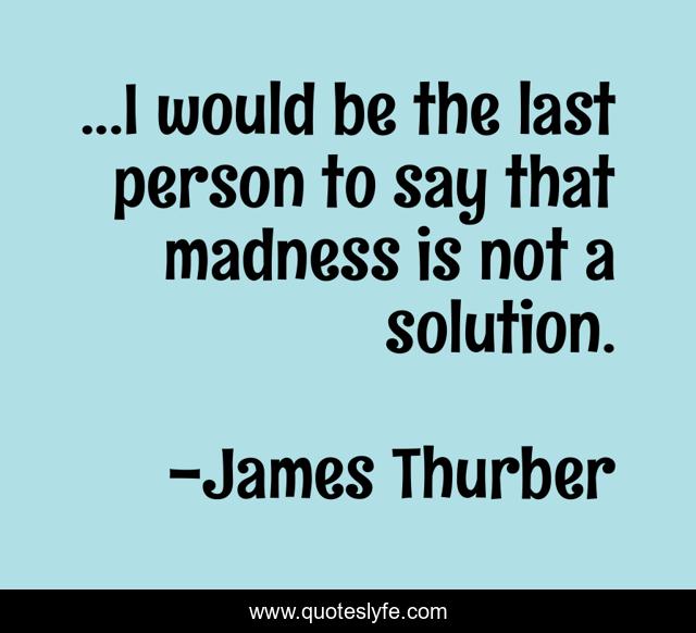 This page presents the quote "...I would be the last person to say that madness is not a solution.". Author of this quote is James Thurber. .