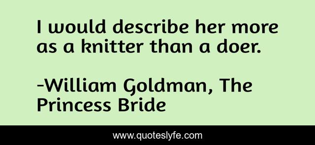 This page presents the quote "I would describe her more as a knitter than a doer.". Author of this quote is William Goldman, The Princess Bride. This quote is about humor, women,.