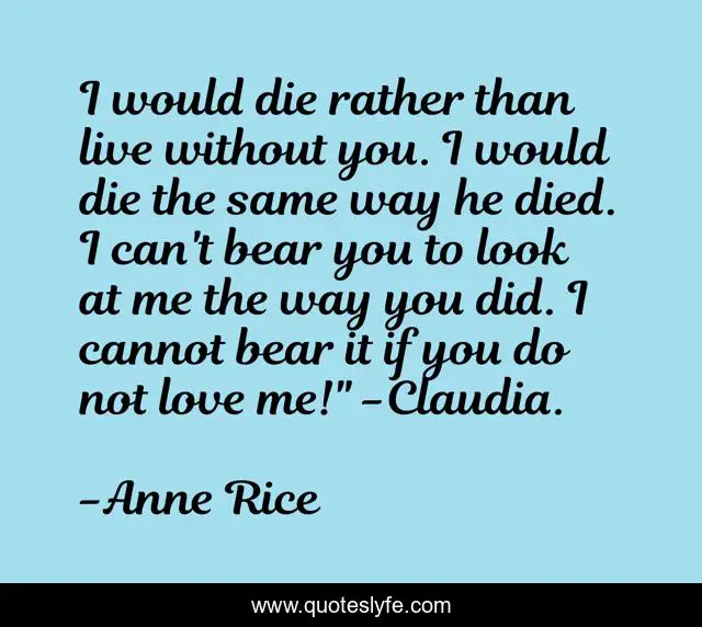 "Anne Rice Quotes." Quoteslyfe.com, 2025. Fri. 05 Dec. 2025. <https://www.quoteslyfe.com/quote/I-would-die-rather-than-live-without-155956>.