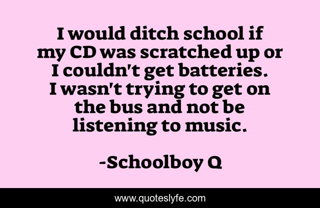 This page presents the quote "I would ditch school if my CD was scratched up or I couldn't get batteries. I wasn't trying to get on the bus and not be listening to music.". Author of this quote is Schoolboy Q. This quote is about school, trying, listening,.