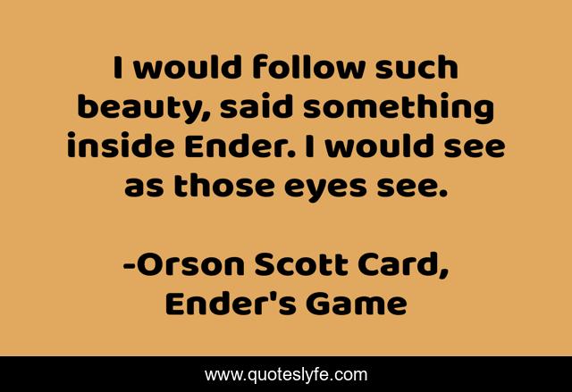 "Orson Scott Card, Ender's Game Quotes." Quoteslyfe.com, 2025. Sat. 06 Dec. 2025. <https://www.quoteslyfe.com/quote/I-would-follow-such-beauty-said-something-64651>.