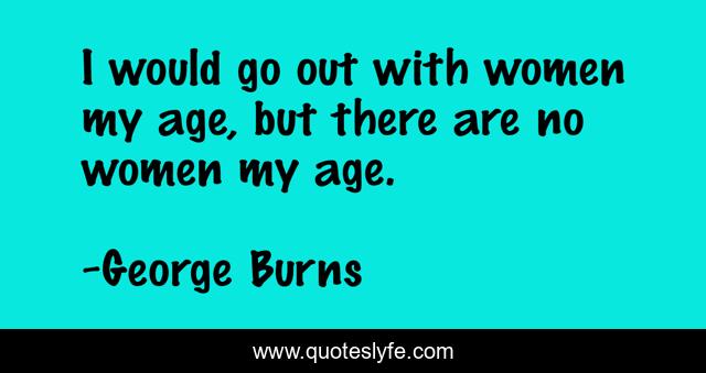 This page presents the quote "I would go out with women my age, but there are no women my age.". Author of this quote is George Burns. This quote is about go, women,.