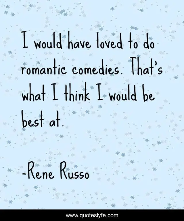 This page presents the quote "I would have loved to do romantic comedies. That's what I think I would be best at.". Author of this quote is Rene Russo. This quote is about loved, think, best,.