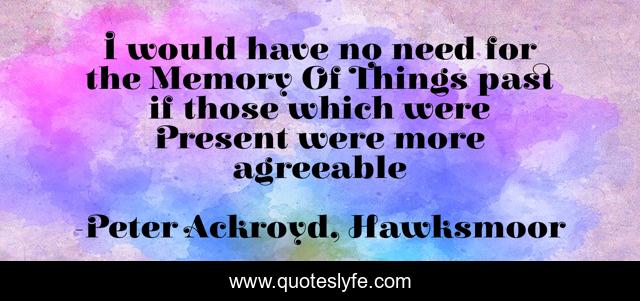 This page presents the quote "I would have no need for the Memory Of Things past if those which were Present were more agreeable". Author of this quote is Peter Ackroyd, Hawksmoor. This quote is about past, present, memory,.