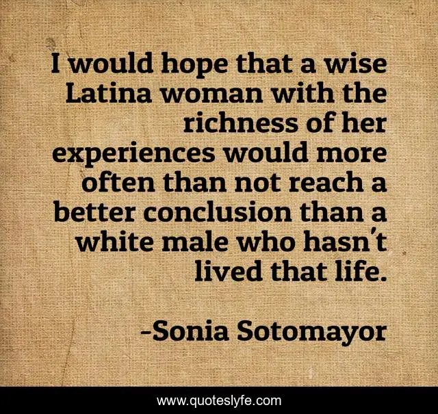 "Sonia Sotomayor Quotes." Quoteslyfe.com, 2025. Mon. 08 Dec. 2025. <https://www.quoteslyfe.com/quote/I-would-hope-that-a-wise-Latina-282785>.