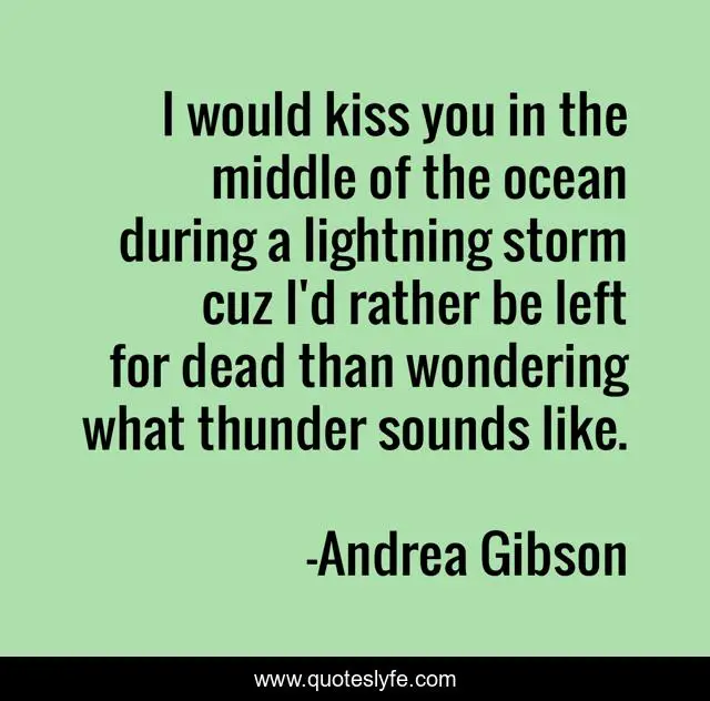 This page presents the quote "I would kiss you in the middle of the ocean during a lightning storm cuz I'd rather be left for dead than wondering what thunder sounds like.". Author of this quote is Andrea Gibson. This quote is about poem, love, andrea-gibson, affection, wasabi,.