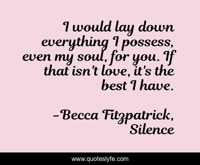 This page presents the quote "I would lay down everything I possess, even my soul, for you. If that isn't love, it's the best I have.". Author of this quote is Becca Fitzpatrick, Silence. This quote is about romance, love, affection,.