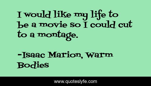 This page presents the quote "I would like my life to be a movie so I could cut to a montage.". Author of this quote is Isaac Marion, Warm Bodies. This quote is about life, music, zombies,.