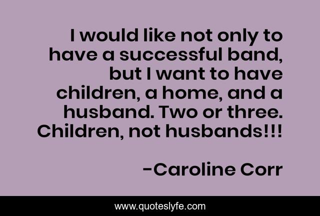 This page presents the quote "I would like not only to have a successful band, but I want to have children, a home, and a husband. Two or three. Children, not husbands!!!". Author of this quote is Caroline Corr. This quote is about successful, children,.