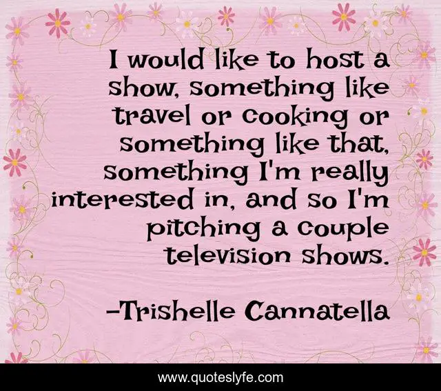 This page presents the quote "I would like to host a show, something like travel or cooking or something like that, something I'm really interested in, and so I'm pitching a couple television shows.". Author of this quote is Trishelle Cannatella. This quote is about television, cooking, show,.