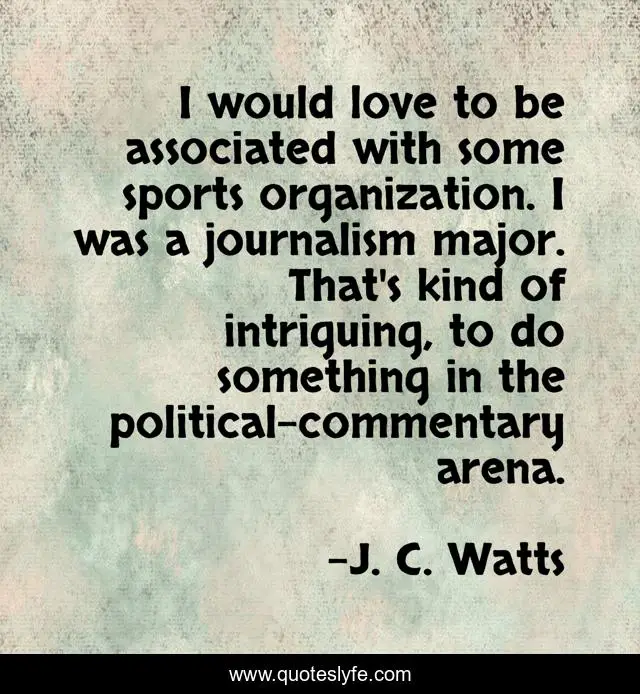 This page presents the quote "I would love to be associated with some sports organization. I was a journalism major. That's kind of intriguing, to do something in the political-commentary arena.". Author of this quote is J. C. Watts. This quote is about love, journalism, affection,.