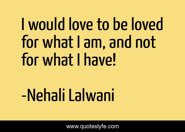 This page presents the quote "I would love to be loved for what I am, and not for what I have!". Author of this quote is Nehali Lalwani. This quote is about self-realization, respecting-yourself, love, affection,.