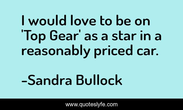 This page presents the quote "I would love to be on 'Top Gear' as a star in a reasonably priced car.". Author of this quote is Sandra Bullock. This quote is about love, star, gear, affection,.