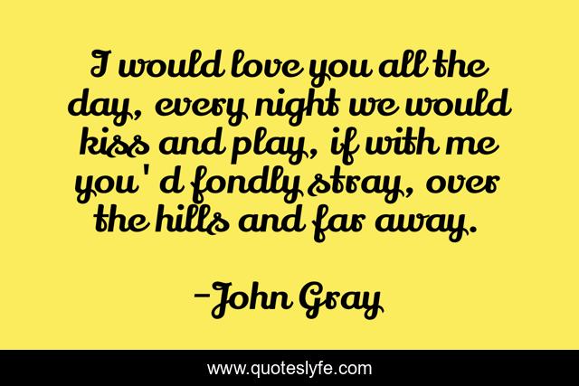 This page presents the quote "I would love you all the day, every night we would kiss and play, if with me you'd fondly stray, over the hills and far away.". Author of this quote is John Gray. .