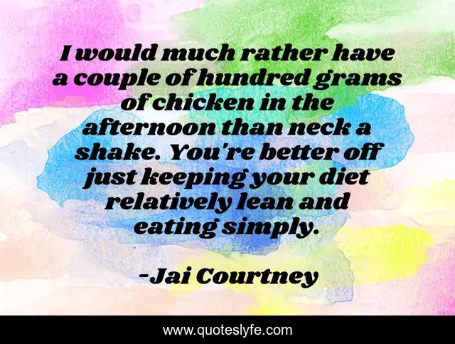 This page presents the quote "I would much rather have a couple of hundred grams of chicken in the afternoon than neck a shake. You're better off just keeping your diet relatively lean and eating simply.". Author of this quote is Jai Courtney. This quote is about better, chicken, eating,.
