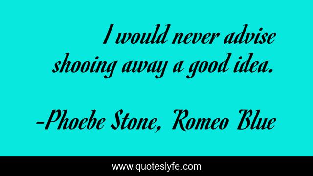 "Phoebe Stone, Romeo Blue Quotes." Quoteslyfe.com, 2025. Fri. 05 Dec. 2025. <https://www.quoteslyfe.com/quote/I-would-never-advise-shooing-away-a-147345>.