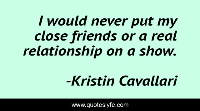 This page presents the quote "I would never put my close friends or a real relationship on a show.". Author of this quote is Kristin Cavallari. This quote is about real, close friends, friends,.