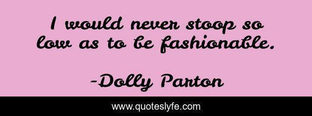 This page presents the quote "I would never stoop so low as to be fashionable.". Author of this quote is Dolly Parton. .