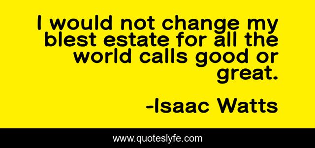 This page presents the quote "I would not change my blest estate for all the world calls good or great.". Author of this quote is Isaac Watts. This quote is about great, good, change,.