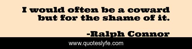This page presents the quote "I would often be a coward but for the shame of it.". Author of this quote is Ralph Connor. .