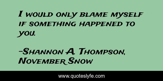 This page presents the quote "I would only blame myself if something happened to you.". Author of this quote is Shannon A. Thompson, November Snow. This quote is about blame, guilt, love, affection,.