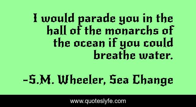 This page presents the quote "I would parade you in the hall of the monarchs of the ocean if you could breathe water.". Author of this quote is S.M. Wheeler, Sea Change. This quote is about fantasy, fairytale, kraken,.