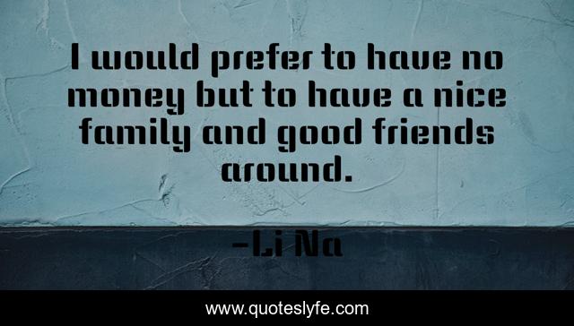 This page presents the quote "I would prefer to have no money but to have a nice family and good friends around.". Author of this quote is Li Na. This quote is about money, good, friends,.