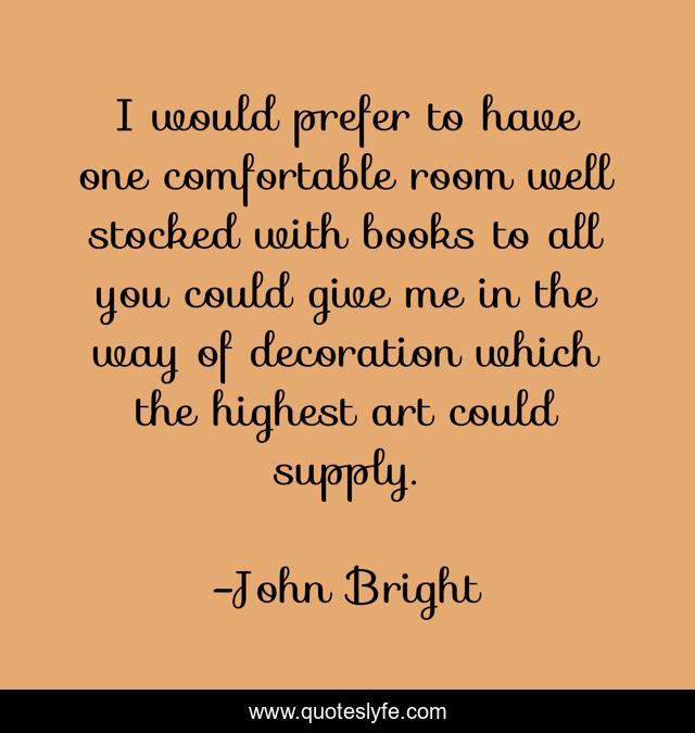This page presents the quote "I would prefer to have one comfortable room well stocked with books to all you could give me in the way of decoration which the highest art could supply.". Author of this quote is John Bright. .