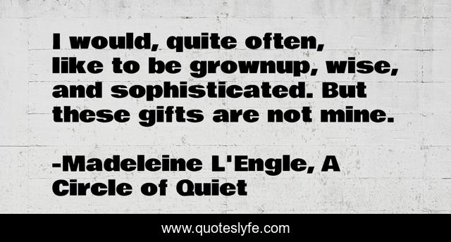 This page presents the quote "I would, quite often, like to be grownup, wise, and sophisticated. But these gifts are not mine.". Author of this quote is Madeleine L'Engle, A Circle of Quiet. .
