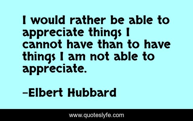 "Elbert Hubbard Quotes." Quoteslyfe.com, 2025. Fri. 05 Dec. 2025. <https://www.quoteslyfe.com/quote/I-would-rather-be-able-to-appreciate-12422>.