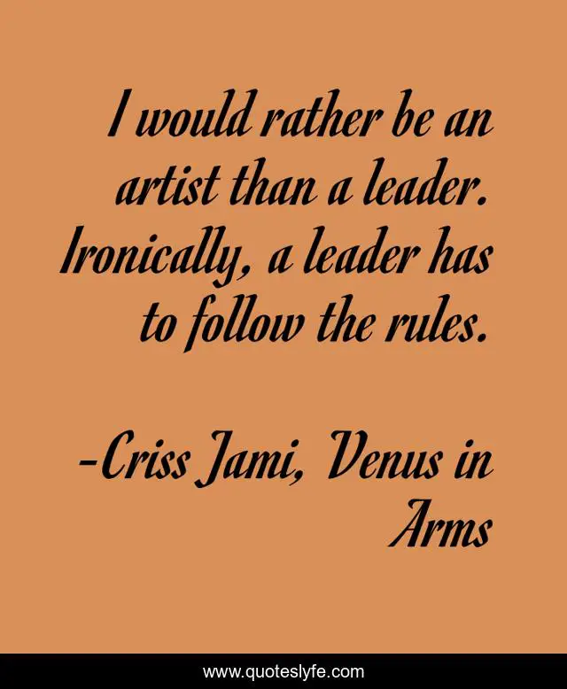 "Criss Jami, Venus in Arms Quotes." Quoteslyfe.com, 2025. Sat. 06 Dec. 2025. <https://www.quoteslyfe.com/quote/I-would-rather-be-an-artist-than-107820>.