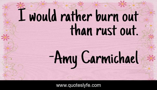 "Amy Carmichael Quotes." Quoteslyfe.com, 2025. Fri. 05 Dec. 2025. <https://www.quoteslyfe.com/quote/I-would-rather-burn-out-than-rust-105790>.