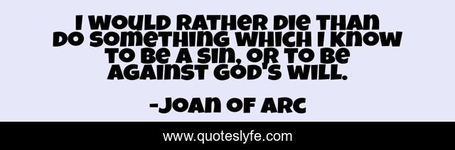 This page presents the quote "I would rather die than do something which I know to be a sin, or to be against God's will.". Author of this quote is Joan of Arc. This quote is about die, sin,.