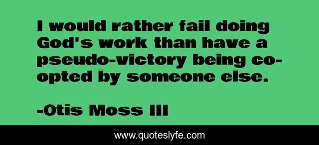 This page presents the quote "I would rather fail doing God's work than have a pseudo-victory being co-opted by someone else.". Author of this quote is Otis Moss III. This quote is about positive, confidence, motivational, optimistic,.