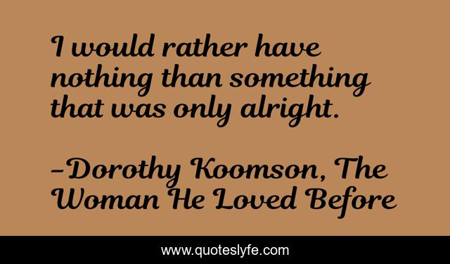 This page presents the quote "I would rather have nothing than something that was only alright.". Author of this quote is Dorothy Koomson, The Woman He Loved Before. .