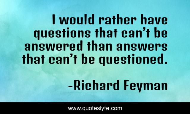 This page presents the quote "I would rather have questions that can’t be answered than answers that can’t be questioned.". Author of this quote is Richard Feyman. .